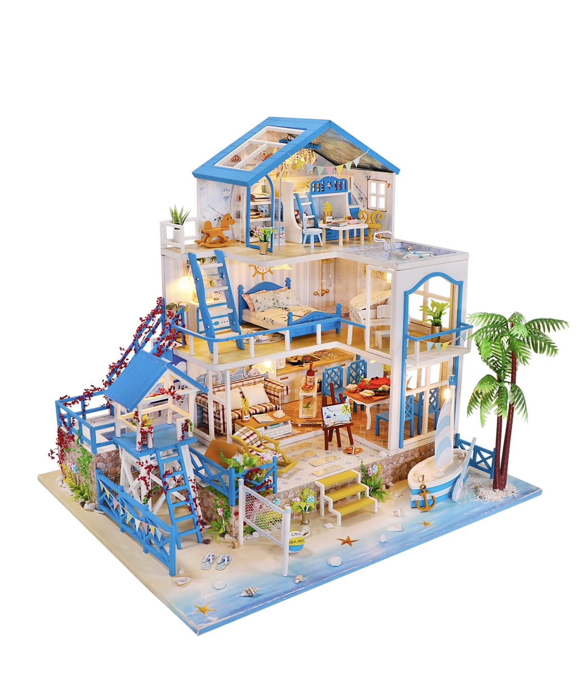 INCLUDES TOOLS, LED LIGHTS, GLUE, ENGLISH MANUAL, MUSIC BOX, AND ACRYLIC DUST COVER.