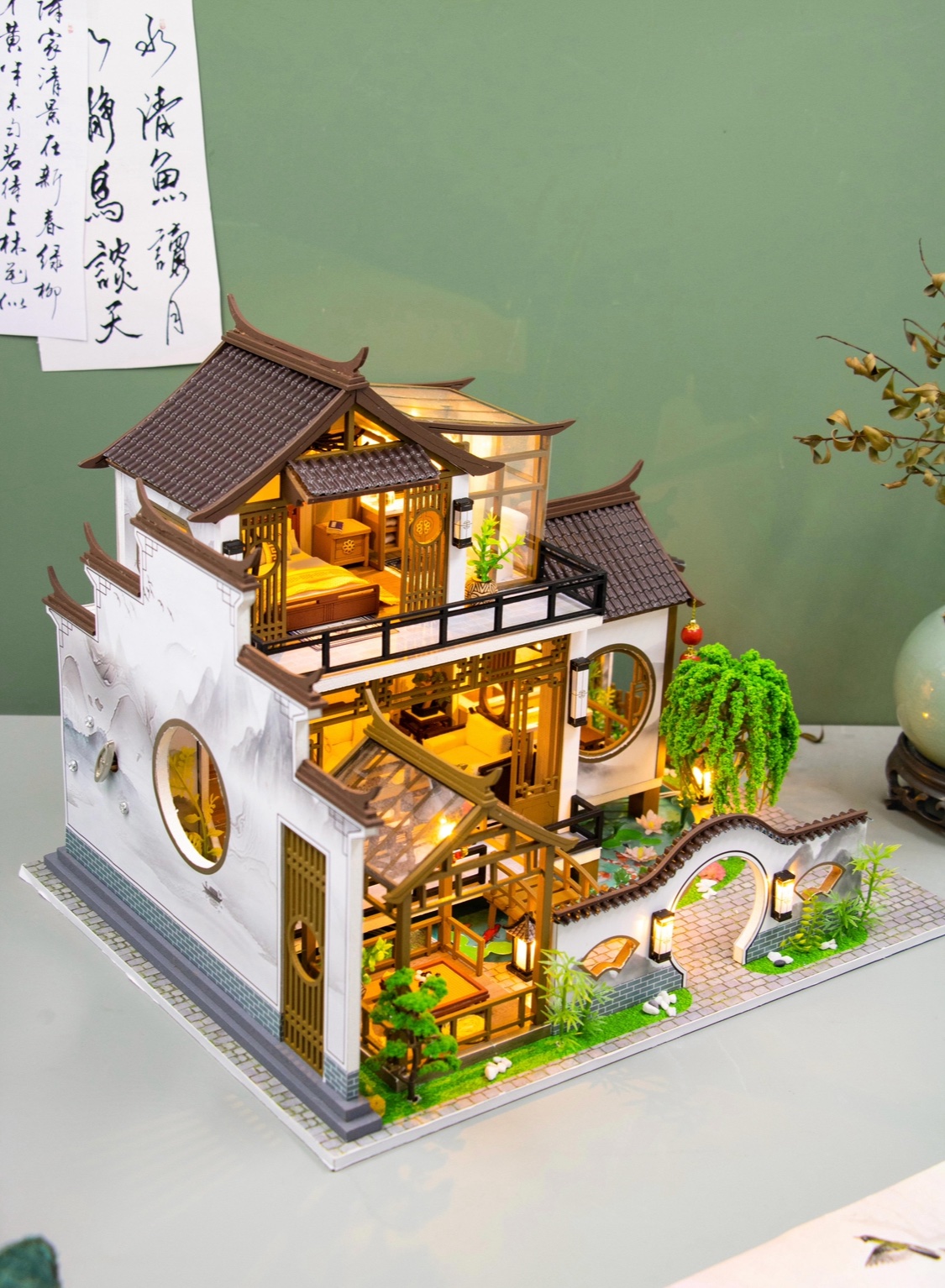 INCLUDES TOOLS, LED LIGHTS, SILICON GLUE, MUSIC BOX, ENGLISH MANUAL, AND ACRYLIC GLASS DUST COVER